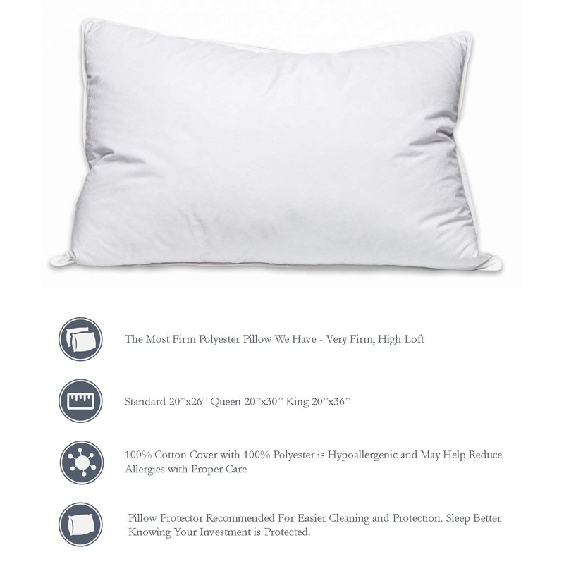 Extra Firm Polyester Bed Pillow – High Loft, Firm Density, Tall Pillows