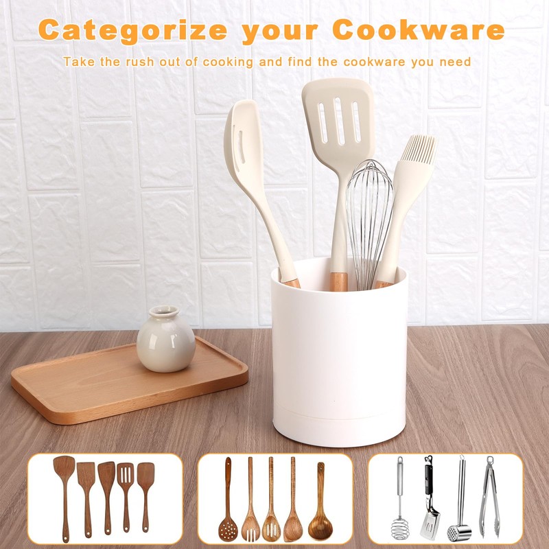 - 【360-degree rotation】Our rotating utensil holder is equipped with a 360-degree rotating base, allowing you to easily access kitchen utensils. The cutlery rack and silverware cutlery rack can rotate smoothly and easily with just the touch of your fingertips.