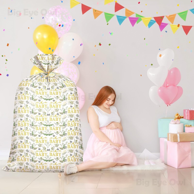 - 【DELICATE DESIGN】 The baby gift bag features charming eucalyptus leaf patterns and an elegant "Oh Baby" design. The sage green color gives a relaxed and soothing feel. This 70 x 40 inch oversized gift bag is the perfect choice for your baby shower party.