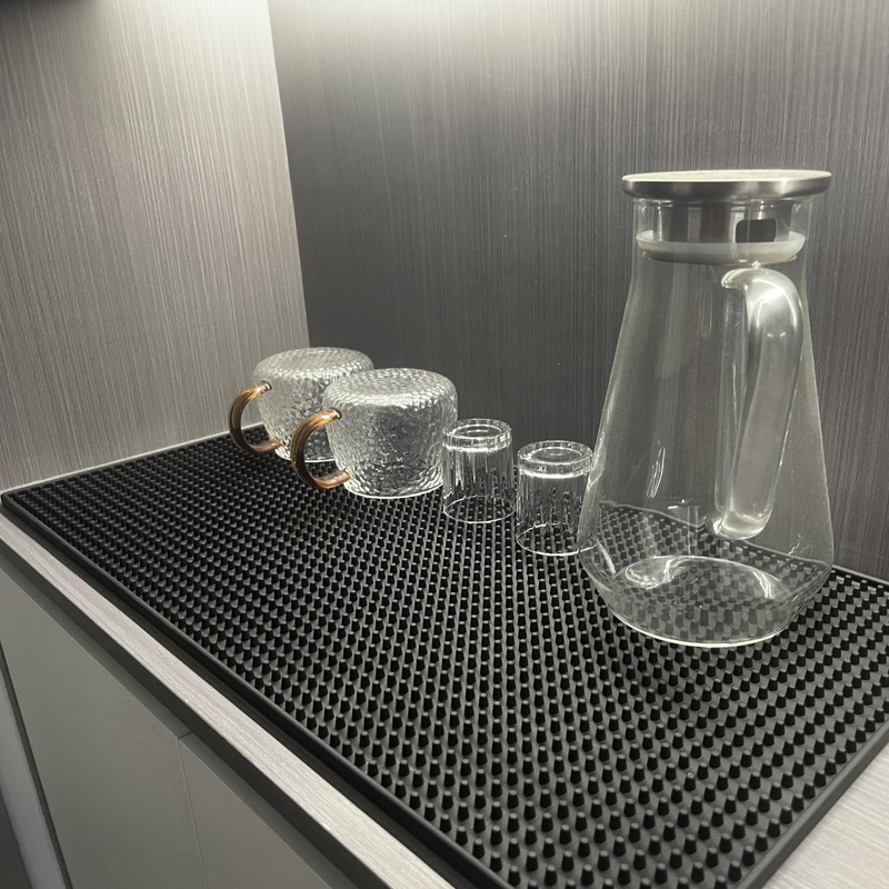 - 【High Quality】Made of high-quality rubber, durable and will not break under high frequency for a long time. The bar mat is non-slip and has strong grip on the surface, ensuring you can use it safely and securely. Our spill mats are 0.4 inches thick and have deep grooves to hold large spills, keeping your countertops tidy!