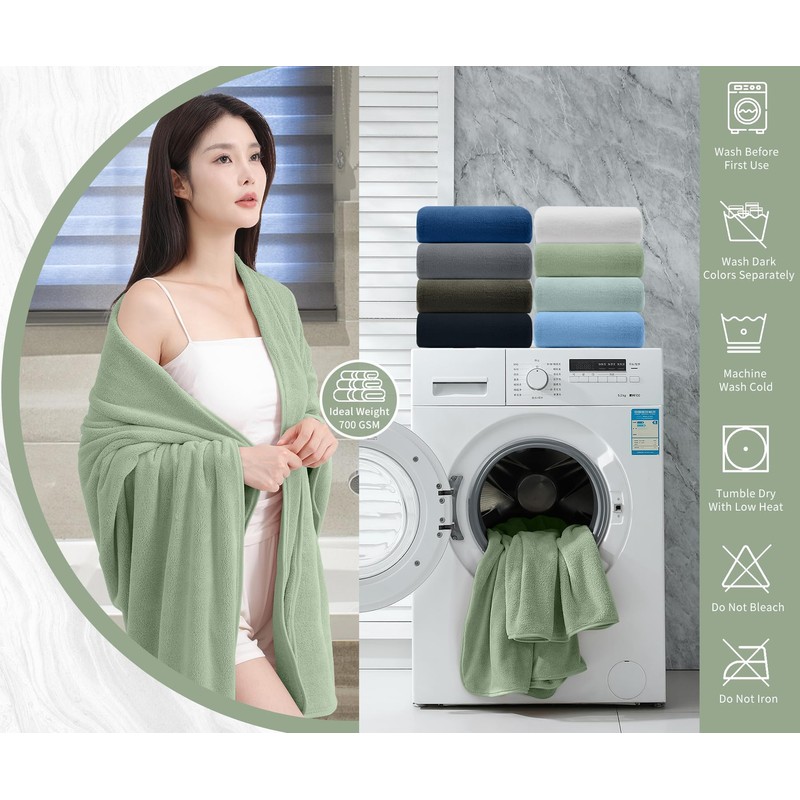 - CARE INSTRUCTIONS:wash before use,Machine wash in cold,Tumble dry low,Do not iron,towels can absorb 10 times their weight in water makes quick drying large surface ,This towel can be washed and reused hundred of times which remain soft after multiple wash and dry cycles.