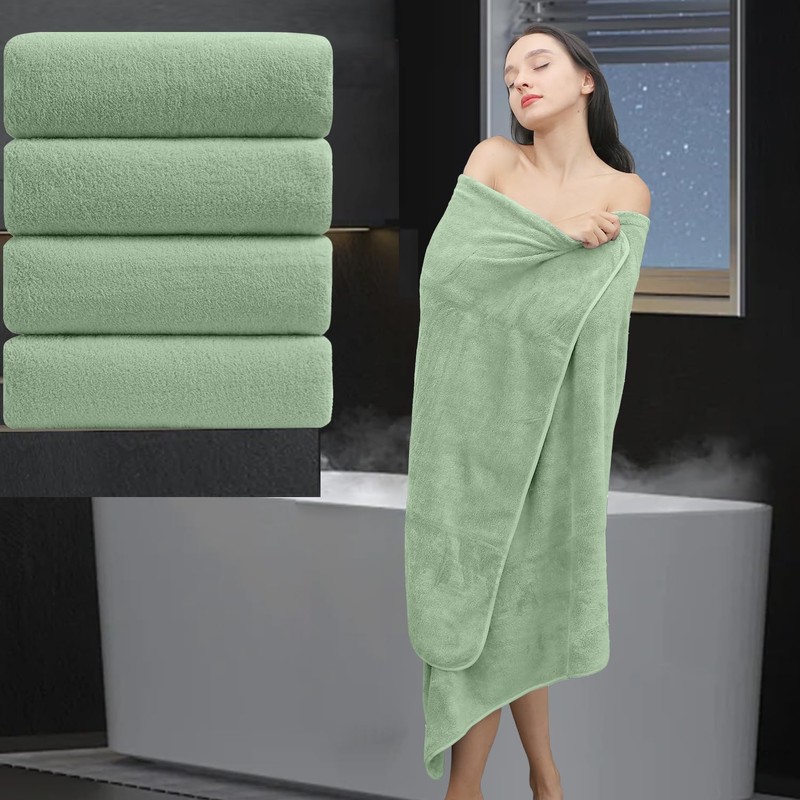 Extra Large Bath Sheet 4 Piece (35"x70")-Ultra Soft Oversized Bath Towel,Bath Sheet Towel Set for Bathroom Hotel,Plush Highly Absorbent Quick Dry Shower Towel Set for Adults,Bathroom Towel Set Green