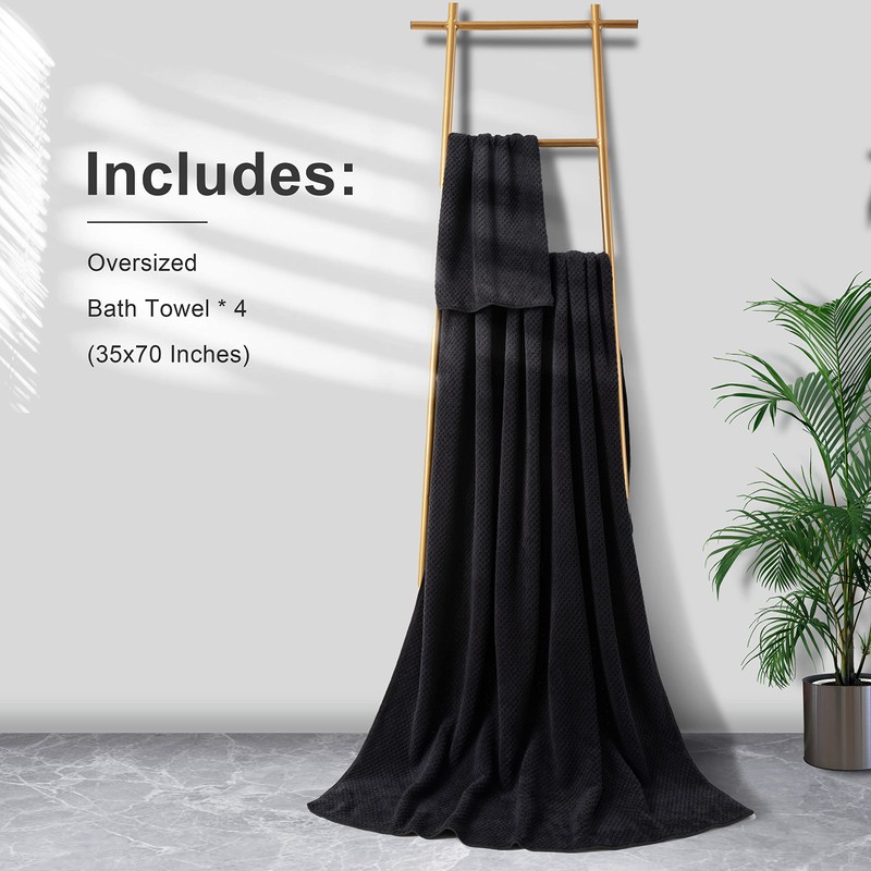 - 4-Piece Bath Sheets 35"x70" - Towel Set, Four Bath towels (35 inch x 70 inch),plenty of room for comfortable lounging after a refreshing shower or relaxing soak; Each towel is spun from 100% superfine fiber - soft, durable, quick-dry, and wonderfully absorbent; It is more durable than any Turkish Cotton Towel