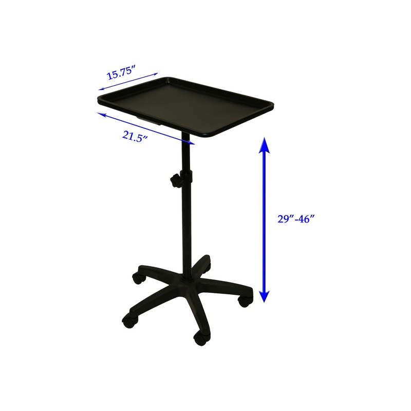 Extra Large Black Steel Rolling Mayo Instrument Work Tray, 21.5" x 15.75", Adjustable Height 29"-46