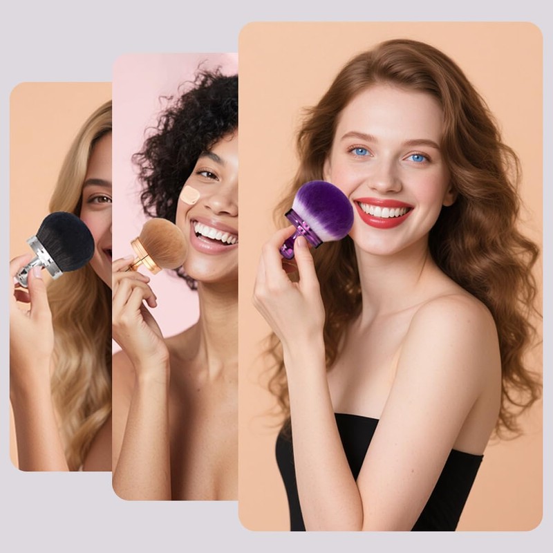 - Extra Large Kabuki Brush Lightning-Fast, Flawless Coverage: Achieve streak-free self-tanner application in 10 seconds! Our 80mm oval kabuki brush effortlessly blends self-tanning lotion, foam, mousse, or spray across your face, body, and hard-to-reach back areas. Perfect for full-body coverage—no streaks, no mess, just a natural, sun-kissed glow!