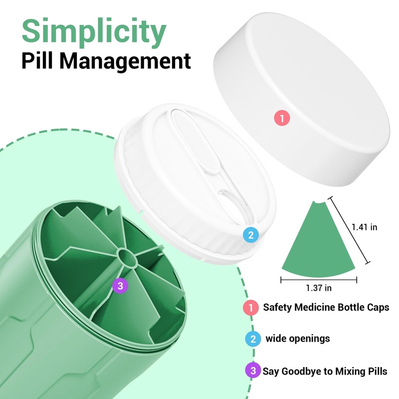 - 【TRAVEL FRIENDLY】You don't have to carry all your pill bottles - all you need is a great portable pill dispenser to organize all the vitamins and pills you need with minimal storage space for maximum convenience. (Size: 4.4 x 3.5 inch, single handle)