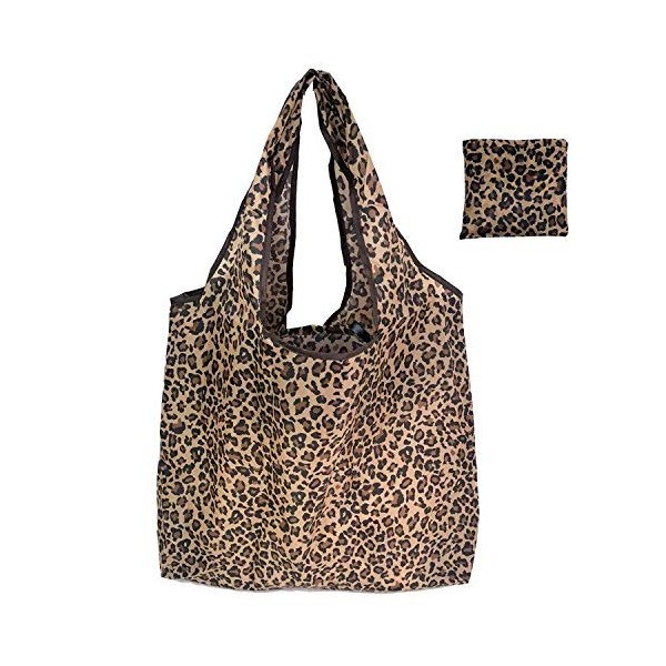 Extra Large Reusable Foldable Ladies Shopping Bag Eco Tote Handbag Fold Away Shopper Bag UK (Classic Leopard Print)