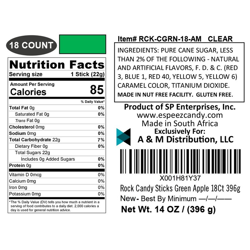 - DON’T SETTLE FOR LESS: Espeez Rock Candy Sticks are 22 grams each and 5 inches of green candy on a 6.5-inch stick, making them the biggest rock candy sticks on the market!