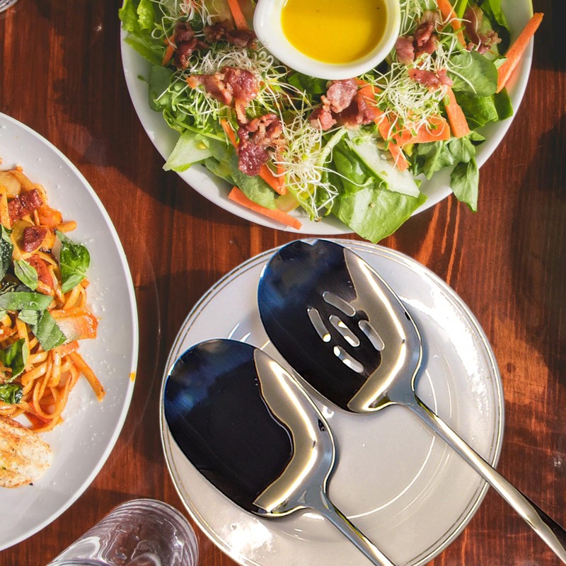 Measuring at an impressive 11.4 inches, these large serving spoons for buffet provide extra size and capacity, allowing you to effortlessly serve generous portions of your favorite dishes. Whether it's a family gathering, a party, or a special event, these stainless steel serving utensils are perfect for serving salads, pasta, meat, vegetables, and more.