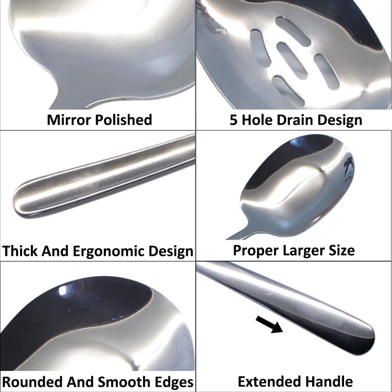 In addition to their aesthetic appeal, these stainless steel serving spoons set are also dishwasher safe, saving you time and effort in cleaning up after meals. Their sturdy construction ensures that they can withstand repeated use and are resistant to rust or tarnish.