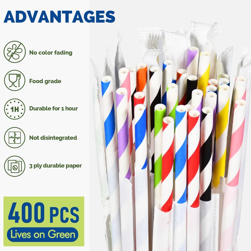 - Disposable Paper Straws Individually Wrapped 400pcs/box