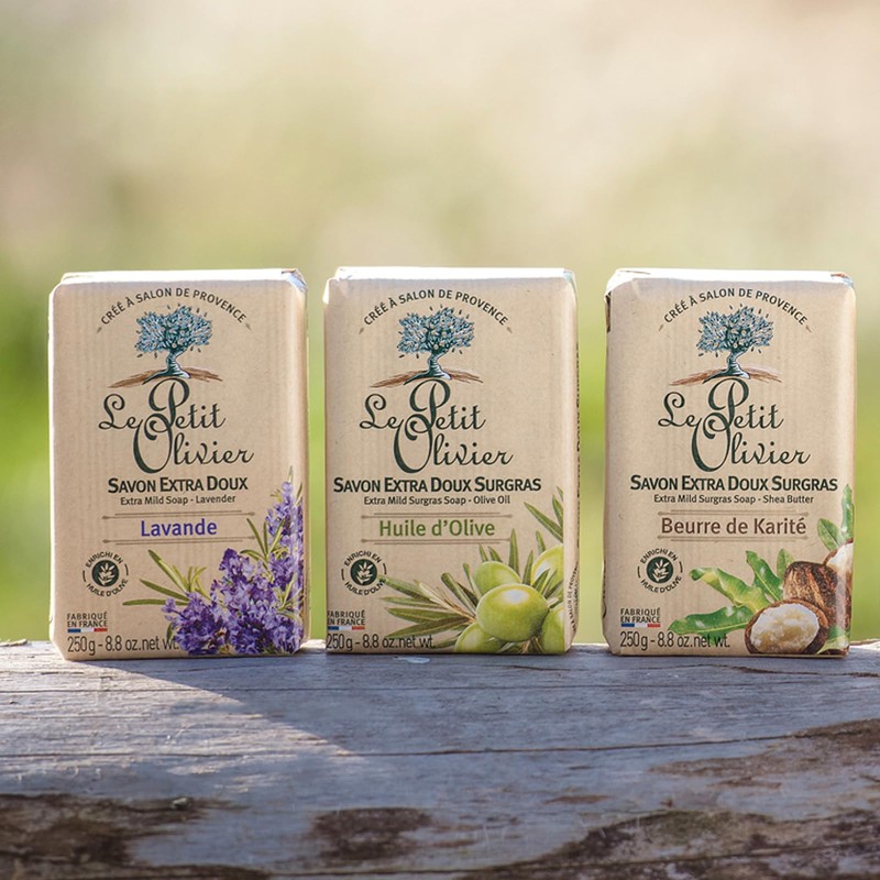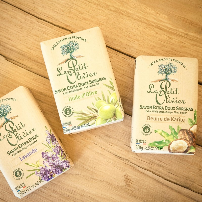 - SKIN-LOVING. Enjoy Le Petit Olivier soap enriched with natural extracts to softly clean your skin. These soap bars wrap skin in a gentle veil and leave behind a delicate scent. They are presented in a Kraft packaging which lets the scent diffuse.