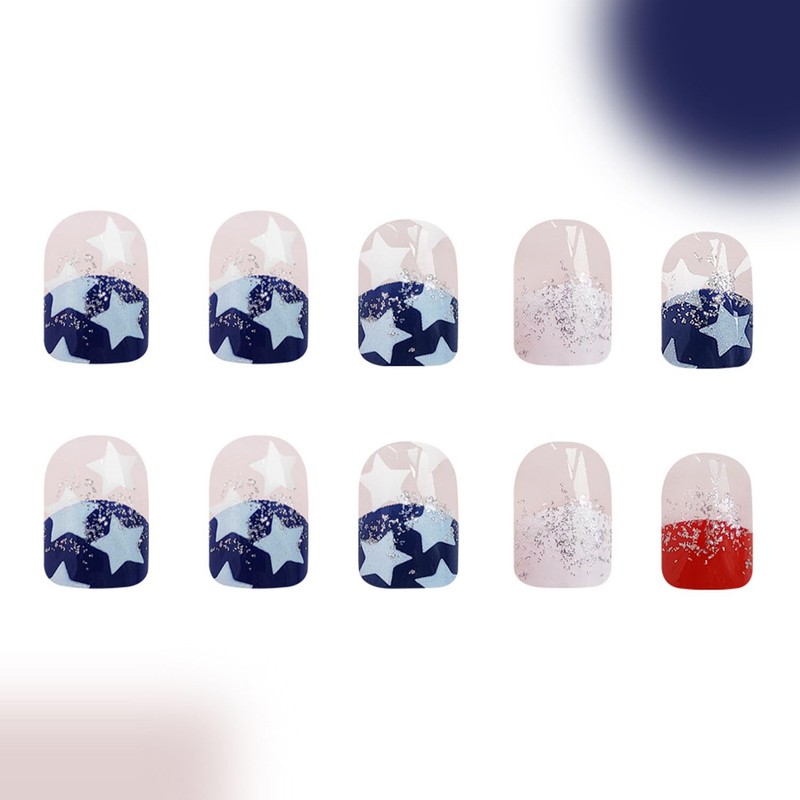 - No need to spend a lot of time and money at the nail salon, you can change your nail style in 12 minutes anytime, anywhere. If you want your American flag fake nails to get a better lasting effect, we recommend you use nail glue and jelly glue at the same time to get a lasting effect of more than 14 days. (Note: We don't offer nail glue)