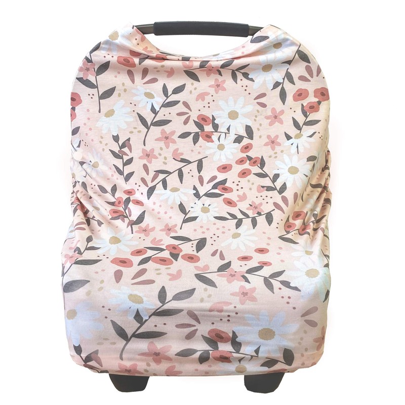 Extra Soft and Stretchy Nursing and Carseat Cover: Peach Posey by Village Baby