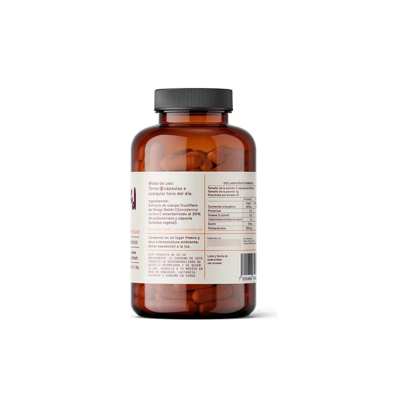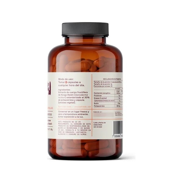 Nuestras cápsulas veganas 100% naturales son la bomba secreta, con un extracto de Reishi concentrado al 30% de polisacáridos, garantizando una dosis explosiva de potencia en cada toma.