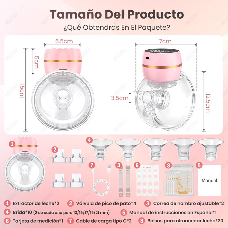 - 🎁Kit completo de extractor de leche: el kit de extractor de leche incluye 2 motores de extractor de leche, 4 válvulas, 2 correas de ajuste, 2 cables de carga tipo C, 1 tarjeta de medición y manual de instrucciones. También está equipado con bridas de 13/15/17/19/21 mm y 20 bolsas de almacenamiento de leche materna de 250 ml, con el objetivo de brindar a cada madre una experiencia de lactancia materna conveniente y cómoda.
