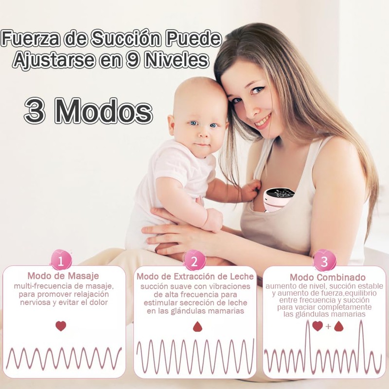 Extractor de Leche Eléctrico Manos Libres,Doble y Portátil,3 Modos y 9 Nivele...