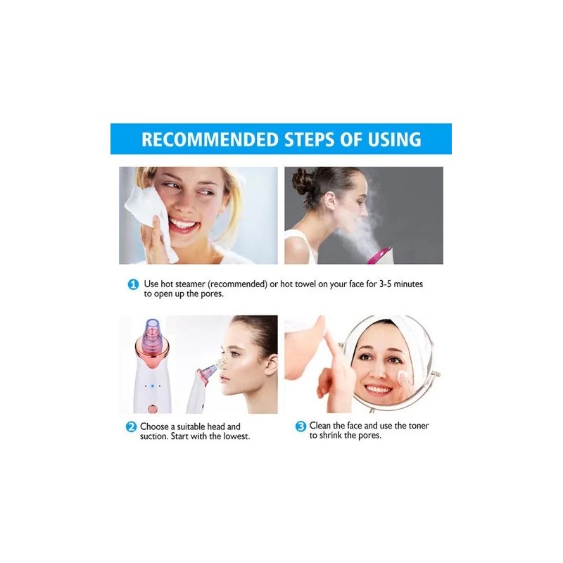 - 🔧 Versatilidad: 5 cabezales de succión para diferentes áreas del rostro.
