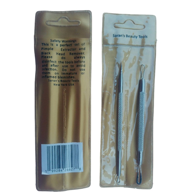 Extractor profesional de 2 piezas de acero inoxidable para eliminar puntos negros, extractor de espinillas, tratamiento de acné, herramientas de eliminación de manchas