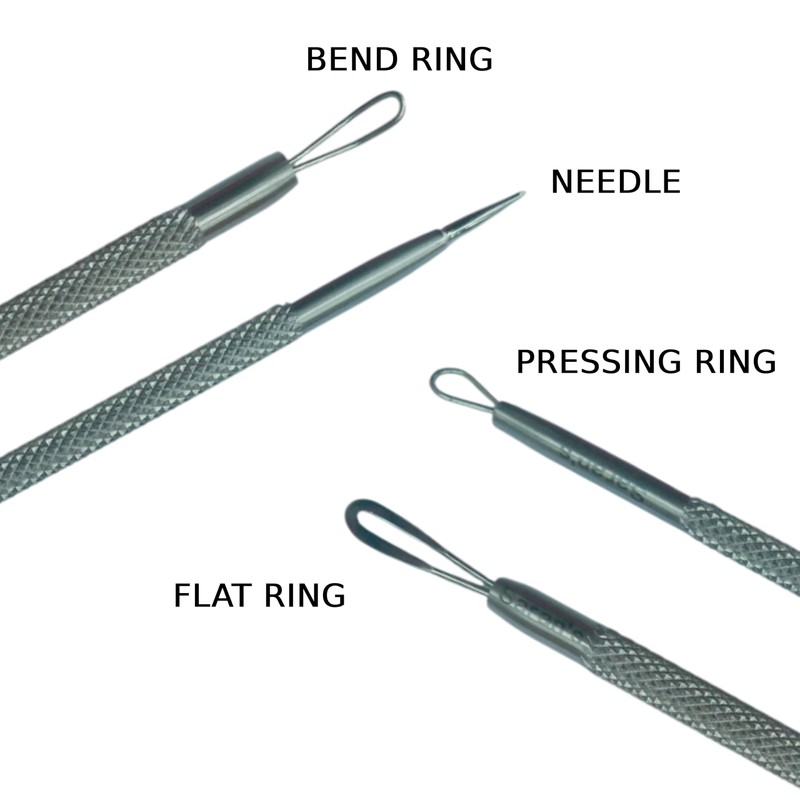 - Herramientas extractoras esenciales de 2 piezas para la cara: 4 extremos funcionales, la punta afilada de la aguja ayuda a abrir la piel de los poros, otras tres formas y tamaños diferentes de bucles (desde bucle pequeño a grande) pueden empujar y presionar para limpiar todos los tamaños de puntos negros o manchas de manera efectiva, incluso el área de difícil acceso, como la zona T, alrededor de la cara, nariz, ojos, etc.