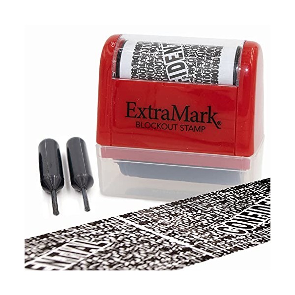 ExtraMark Identity Theft Protection Blockout Stamp - Roller Stamp with Two Replacement Ink Tubes - Red Unit