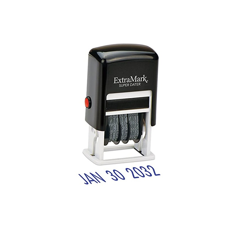 ExtraMark Super Dater Ink Stamp - Self-Inking Rubber Date Stamper - for Documents, Library Books & More - Blue Ink