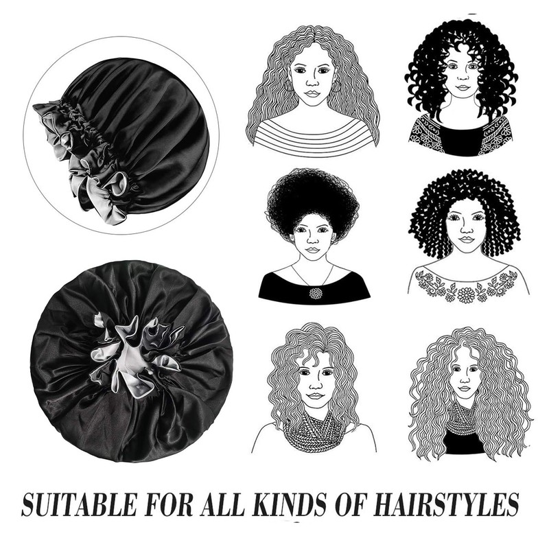 - LUXURIOUS MATERIAL: Made from silky satin, this bonnet is reversible and features a double-layered design. The soft inner lining guards your natural hair against friction during sleep.