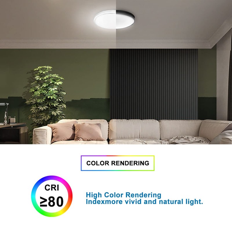 - 【Eye Protection】: The ceiling light gives off 1950 lumens and a high CRI> 80 provides vivid colors effects to better protect your eyes.
