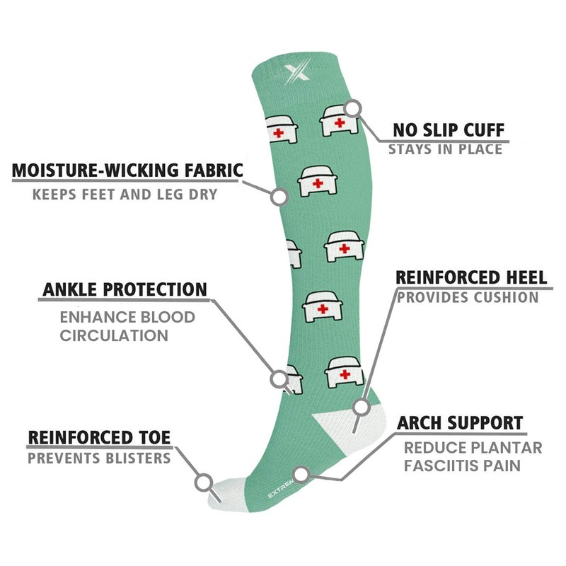- Improved Blood Circulation - Compression socks are the perfect way to enhance blood circulation and promote better movement through your legs. These compression socks work to reduce swelling, cramping, and stiffness in the foot, ankle, and calf.
