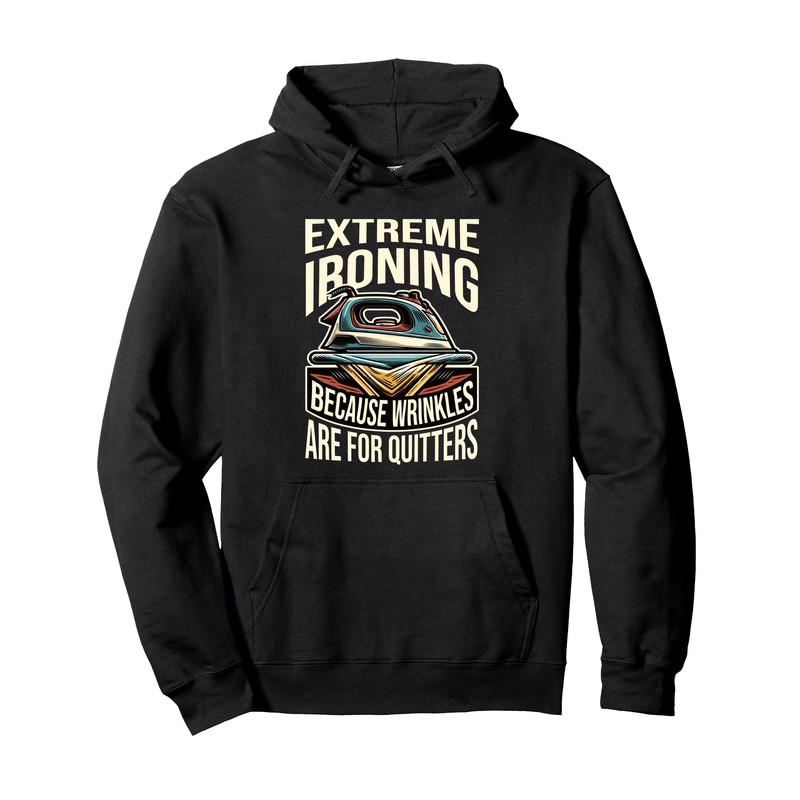 - Extreme Ironing design that reads: "Extreme Ironing - Because Wrinkles Are for Quitters".