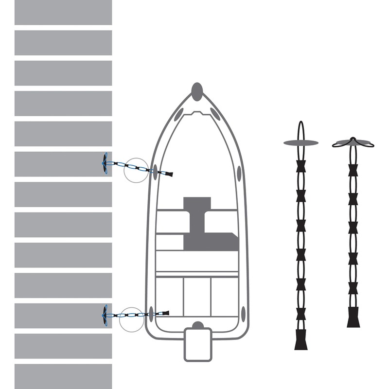 - Bungee lines eliminate the jerking and tugging on your docked boat caused by non-bungee dock lines