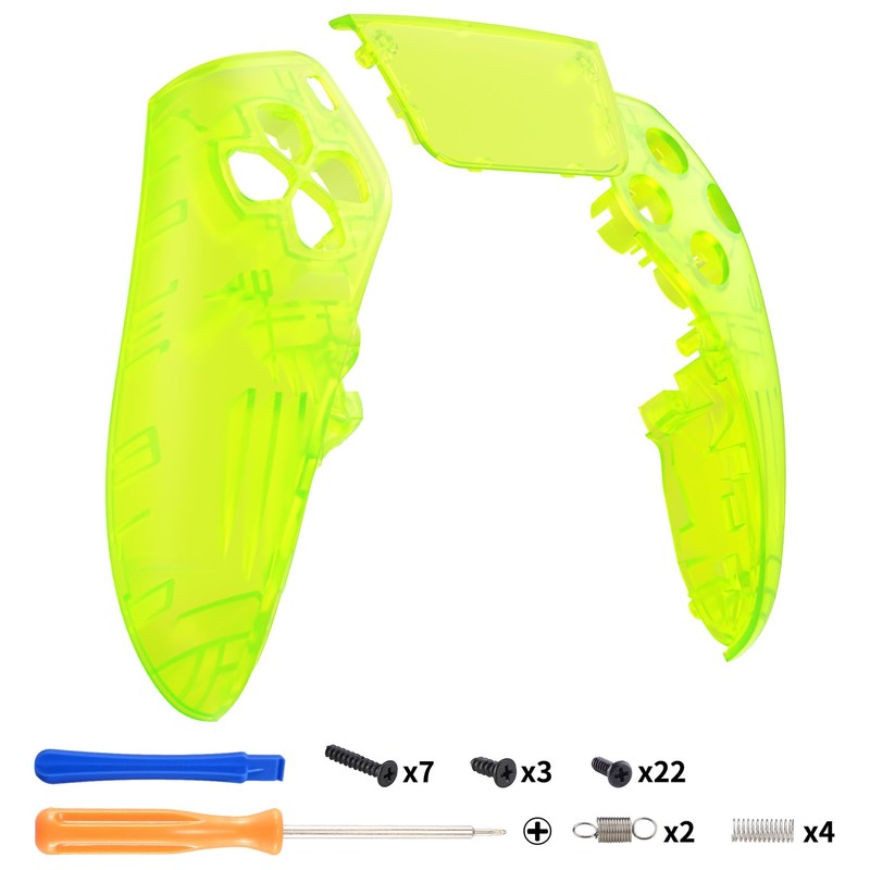 eXtremeRate Left Right Front Shell and Touchpad Compatible with p s 5 Edge Controller, Clear Lime Green Replacement Faceplate Shell Custom Touch Pad Cover Compatible with p s 5 Edge Controller