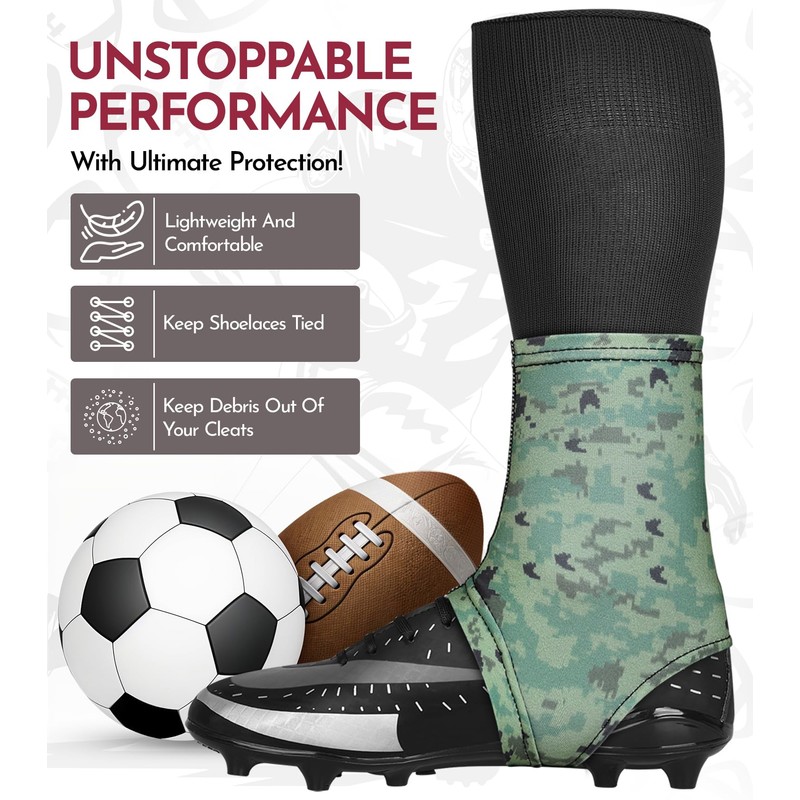 - STRETCHES OVER YOUR CLEATS WITH EASE: Made from a premium blend of 90% polyester and 10% spandex with 4-way stretch compression fabric, these cleat spats football are lightweight and flexible. They stretch comfortably over your shoes without losing their shape.
