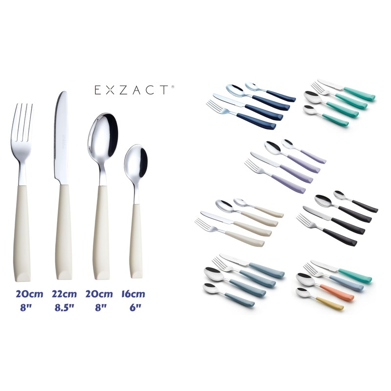 EXZACT Cutlery Set Coloured 16pcs Stainless Steel, Silverware with Coloured Handles Comfortable to Hold (Cream x 16)