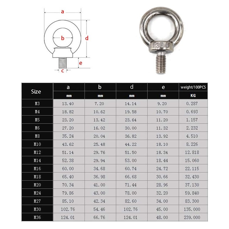 Eye Bolt 304 - Tornillos de acero inoxidable para anilla de levantamiento, M6