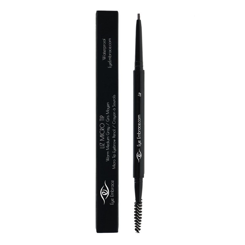 Eye Embrace Liz Micro-Tip Pen: Medium Gray Ultra-Fine Micro Eyebrow Pencil – Waterproof, Double-Ended Automatic Micro-Tip & Spoolie Brush, Cruelty-Free