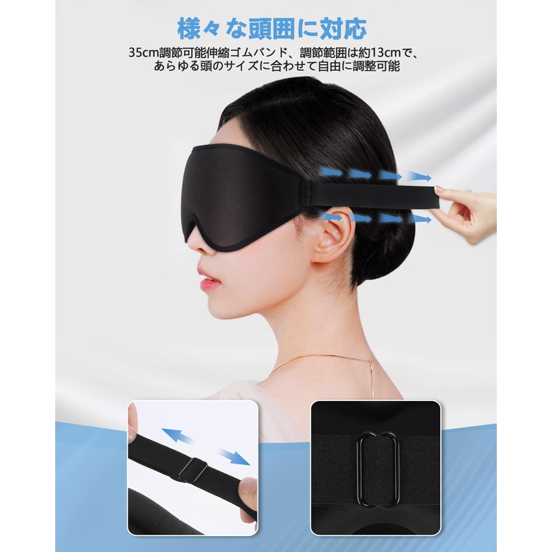 - (3D Eye Mask: No feeling of pressure on the eyepiece) Achieves high light shielding in 3D form that matches the shape of the eye. There is no pressure on the eyes and space around the eyes so that you won't feel uncomfortable even when you blink. Experience unprecedented eye comfort and quality sleep
