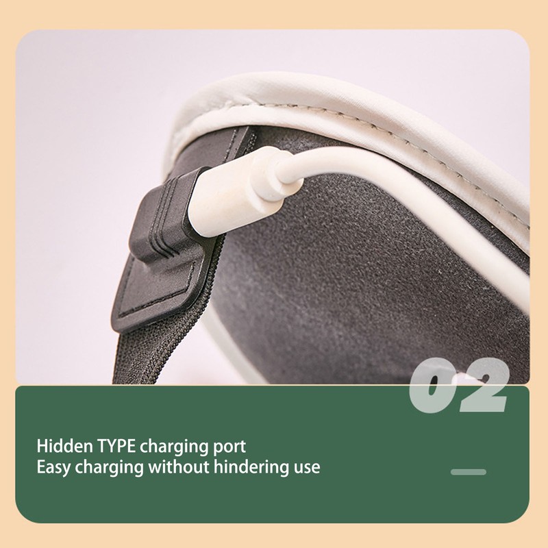 1、3 Gear Heating: The eye patch owns a function of heating. The quickly heats ensures that the temperature is suitable for the skin to feel, and will not harm the fragile skin of the eyes. 2、7 Modes: 7 modes are available to meet the eye care needs of different people. Simulates real life techniques, intelligently controls the massage force, stimulates eye acupuncture points, relaxes tight muscles around the eyes, and multi effects to relieve eye fatigue. 3、Ergonomic Arc 3D Structure: The eye patch fits the contours of the face. All round shading and the design fits the eye structure, which reduces eye pressure. 4、Various Usage: It is not only a shading eye patch, but also an eye massager. The detachable design makes the eye patch visible and can be used while working and studying. 5、Easy to Use: Light weight, easy to carry, built in high capacity battery, safe to use when going out, suitable for study, bedroom, office, travel, etc.