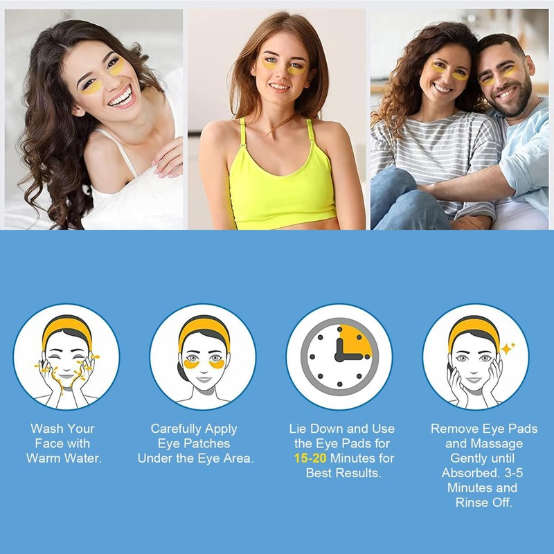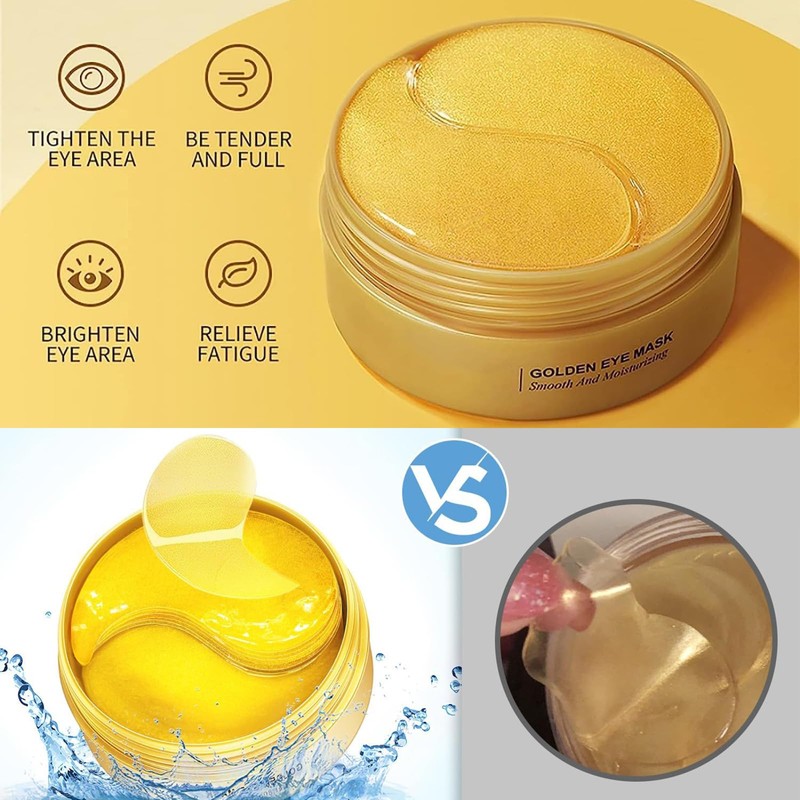 - Eye Pads, Eye Pads Against Dark Circles, Remove Dark Circles, 24 K Gold Anti-Ageing Eye Mask with Hyaluronic Acid, Eye Pads with Hyaluronic and Collagen for Anti-Ageing, Pack of 60