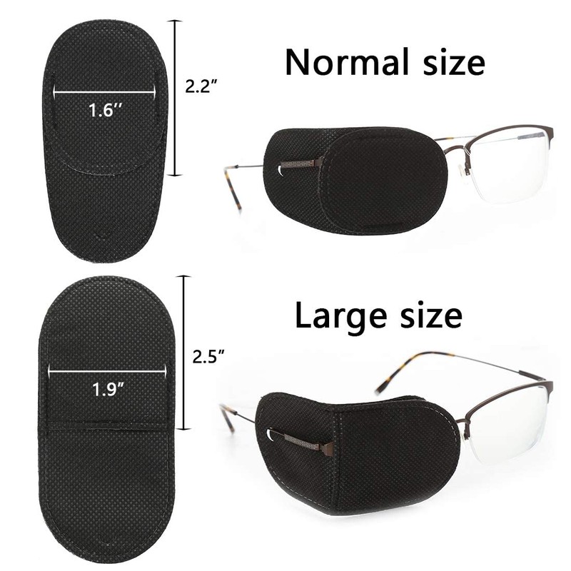 • Package Includes: Our eye patches contains 12 pieces glasses patch, of which there are 6 normal size ( 2.2" x 1.6" ) and 6 large size ( 2.5" x 1.9")