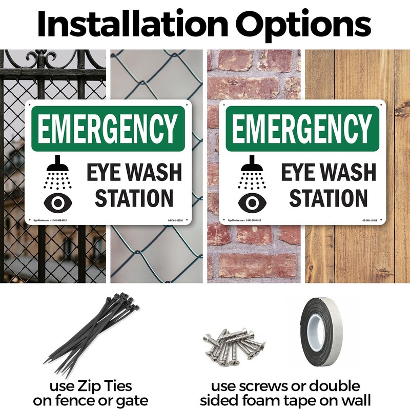 Eye Wash Station OSHA Emergency Rigid Plastic Sign 10 Inch x 7 Inch - 10 Pack