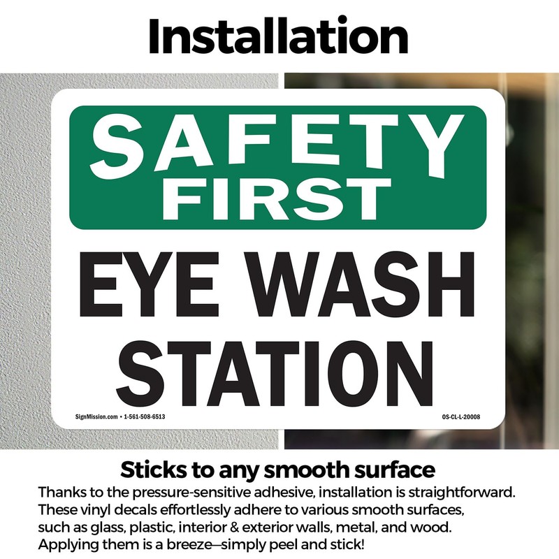 Eye Wash Station OSHA Safety First Vinyl Decal Label 7 Inch x 5 Inch - 10 Pack