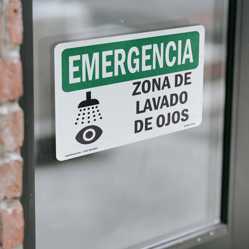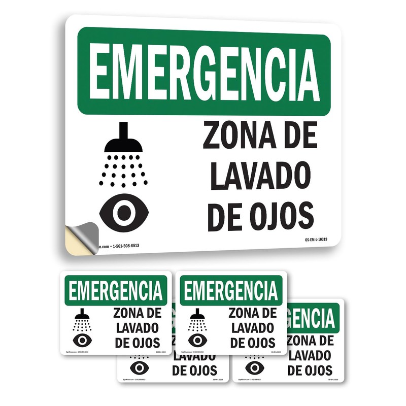 Eye Wash Station Spanish OSHA Emergency Vinyl Decal Label 24 Inch x 18 Inch - 5 Pack