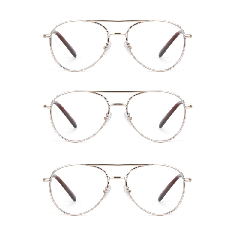 - EYE ZOOM 3 pack unisex metal aviator style blue light blocking reading glasses with spring hinged. Classic aviator style, look good on any face shape. Spring-hinged temples, help glasses fit your face. Great for home and office use.