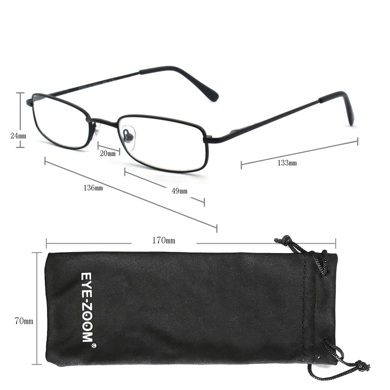 - Product includes the 3 pairs of EYE ZOOM Reading Glasses & 3 pairs of soft pouch. Soft cloth bags can be used to clean the lenses.