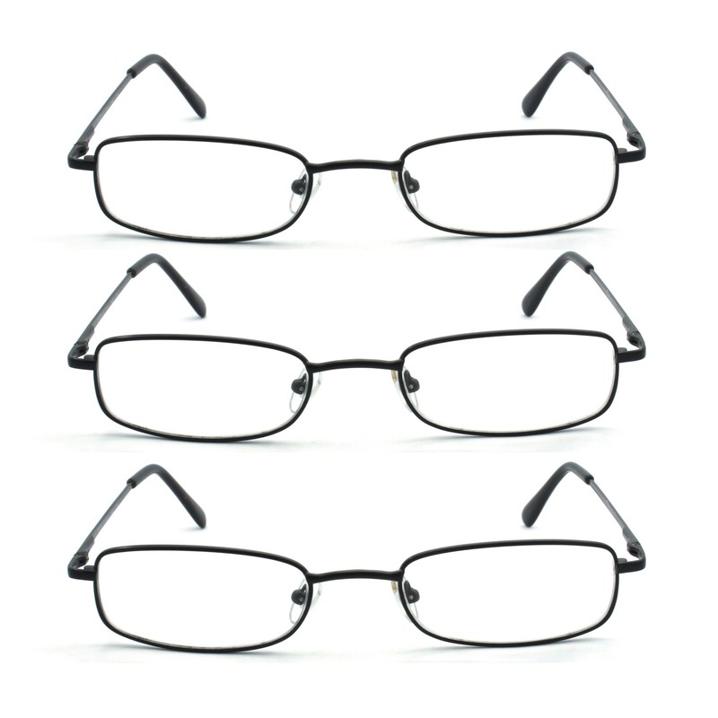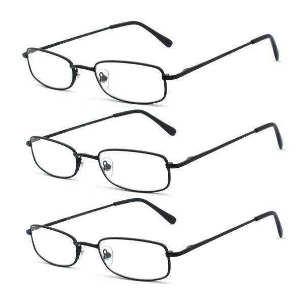 EYE ZOOM 3 Pack Classic Readers Rectangular Metal Reading Glasses for Men and Women, Black, +1.25 Strength