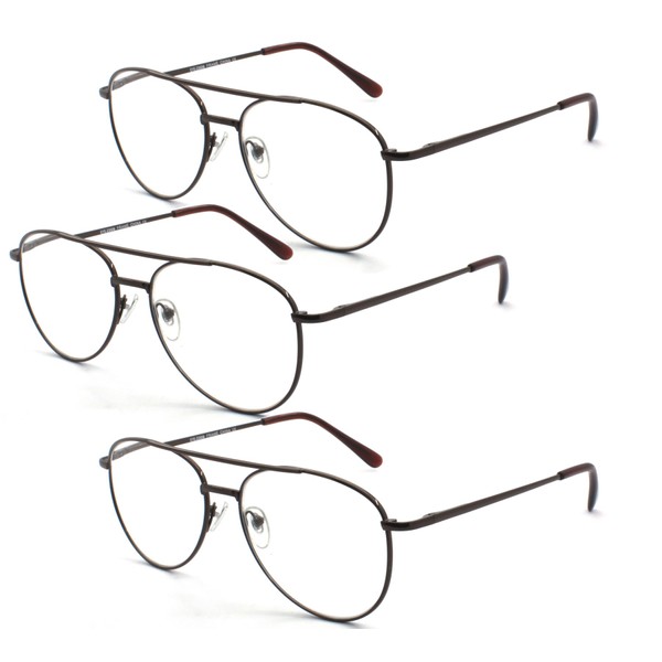EYE ZOOM 3 Pack Metal Frame Aviator Style Reading Glasses with Spring Hinge (Brown, Strength: +1.25)