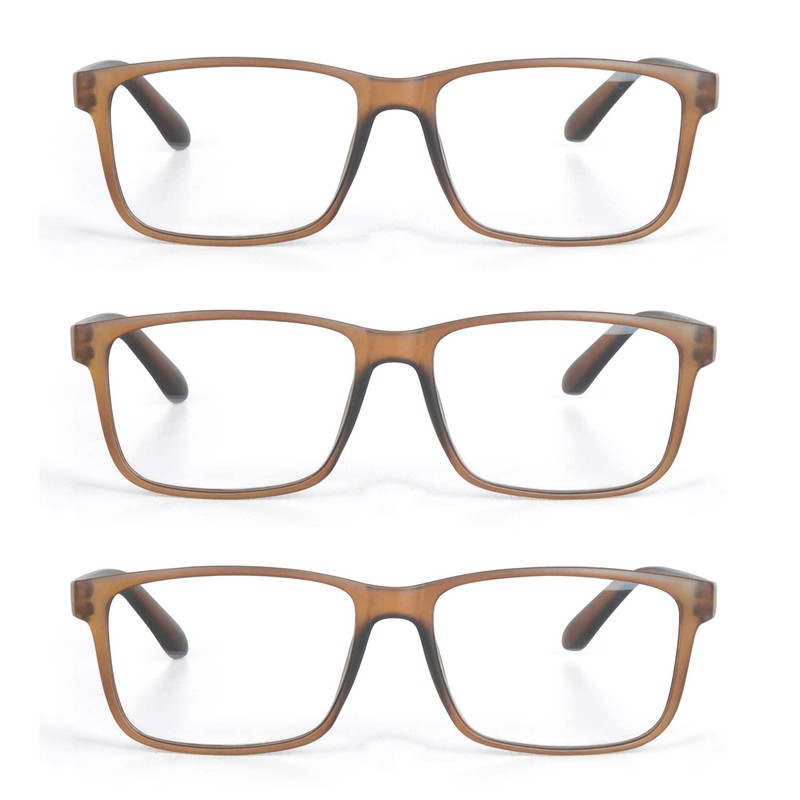 EYE ZOOM 3 Pack Plastic Frame Classic Rectangular Style Reading Glasses for Men and Women, Brown, +1.50