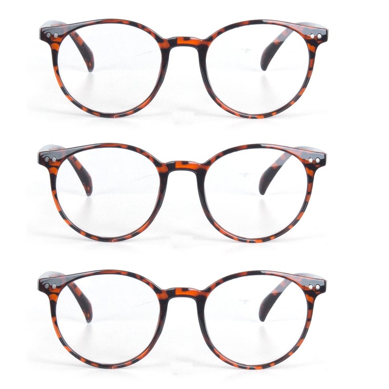 EYE ZOOM 3 Pack Retro Round Plastic Frame Reading Glasses for Men and Women, Brown Tortoise, +3.00