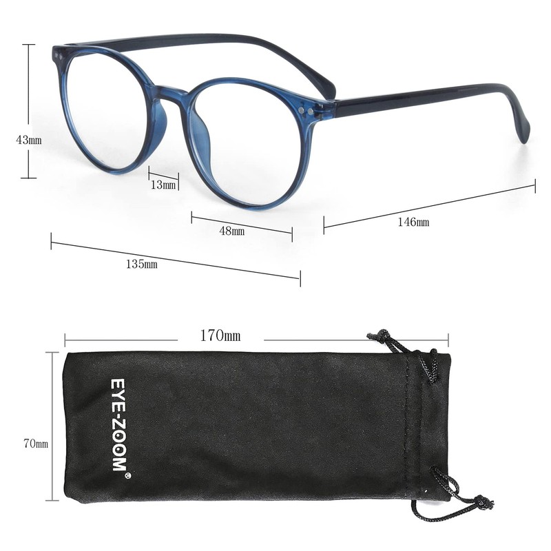 Bring vintage charm and modern comfort to your reading experience with the EYE ZOOM 3-Pack Classic Round Reading Glasses. Designed with a retro-inspired circular frame, these unisex plastic readers combine timeless style with practical functionality. The spring-hinged temples offer a flexible and secure fit for all face shapes, while the scratch-resistant acrylic lenses provide sharp, clear vision and help reduce eye strain. Perfect for use at home, in the office, or on the go, each set includes 3 stylish pairs of glasses along with a soft pouch, cleaning cloth, and glasses strap for added convenience. Ideal for daily wear or thoughtful gifting to parents and seniors alike.